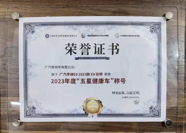 获得中国南北极科考队认可、赢得世界冠军青睐,传祺新能源E9的成绩不止于此。今年6月19日,传祺新能源E9从1400款车型中脱颖而出,以同级最低、且低于行业平均水平16.9%碳排放水平,荣获“2023中国汽车低碳领跑者车型”。11月28日,在钟南山院士见证下,传祺新能源E9经过中国汽车健康测评指数认定,被授予“五星健康车”称号,继M8宗师获之后再获此荣誉,足以印证传祺MPV驾乘座舱的健康与安全。