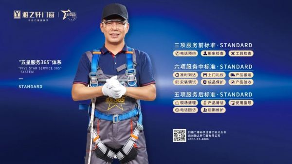 每一次的用心服务,都是为了生活更有温度。雅之轩门窗获得由安信联合认证颁发的五星“售后服务认证”,成为国内首家获此认证的门窗品牌,率先提出“五星服务365体系”,不仅是为了让品牌在同行竞争中取得优势,更是为了让每一位选择雅之轩的用户都能有美好舒适的家居体验。