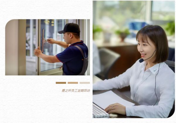 “重视售后服务,并坚持做好每一步”让雅之轩门窗的服务理念被消费者口耳相传。雅之轩门窗的服务没有终点,注重客户的使用体验感,会主动不定期地回访,并上门为消费者提供一系列的增值服务,如门窗清洁、维修保养等,让消费者享受到更加全面的服务体验。