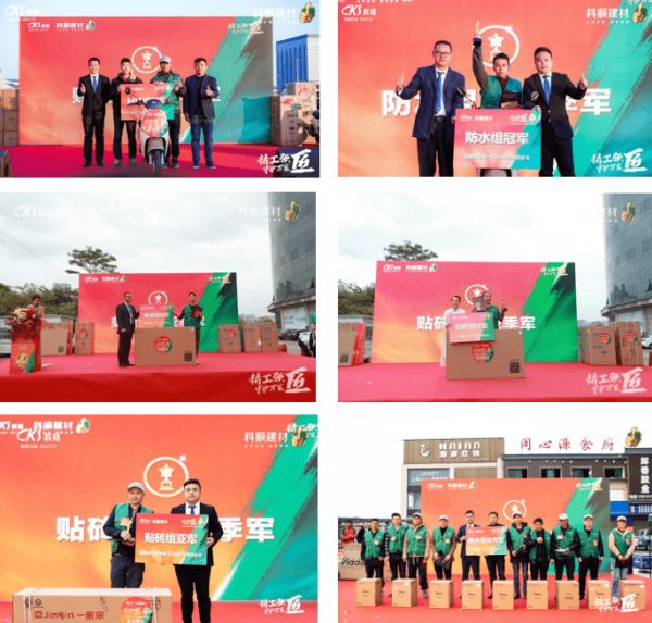 在科顺职校及协会专业考评员严格公正的监督评分下,参赛选手们经过理论+实操的激烈角逐,最终评选出了防水组、贴砖组、美缝组的冠亚季军及优秀奖的获奖师傅。
