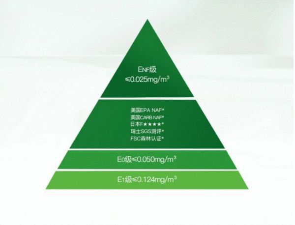 随着2021年中国GB/T 39600—2021《人造板及其制品甲醛释放量分级》环保标准正式实施,新增ENF级别。ENF新国标成为了全球人造板行业更严苛的环保等级标准,规定甲醛释放量≤0.025mg/m³,优于E0级别和欧美、日本环保标准,是国内现行环保等级的天花板。