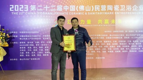 汇聚力量,共赢未来!12月23日,由佛山市总商会主办的“2023第二十二届中国(佛山)民营陶瓷卫浴企业家年会”在广东佛山盛大举行。本次大会以“创新为本,提振信心,推动陶卫行业迈向国际化新征程”为主题隆重开展,会议上,主办方针对2023年度建陶卫浴行业表现卓越的优秀企业进行了简洁而隆重的颁奖仪式。