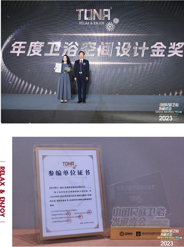 TONA朵纳荣膺2023中国民族卫浴品牌荣光榜“年度卫浴空间设计金奖”