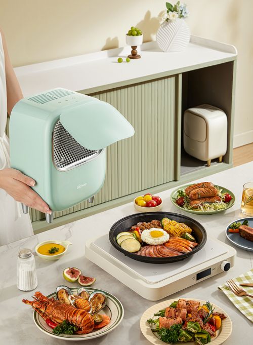 独自生活在异乡的人,偶尔想要尝试自己在家“素手调羹汤”的难度指数直线上升,在外租房不可避免地面临小户型住房、公寓住宿配备开放式厨房、租房标间无厨房等问题,于是,做饭成为困扰打工人的场景痛点——房间空间小、排气难,做饭时常烟雾缭绕,有时吃完饭都还未散去;租房无厨房,卧室做饭忙,熏黑天花板,房东找上门;开放式厨房,烹饪油烟直飘卧室……烹饪油烟熏皮肤、伤肺部、污家具,大大危害身心健康。