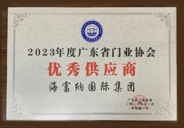 喜报丨海富纳集团(Haffner Group)荣获2023年度广东省门业协会“优秀供应商”...
