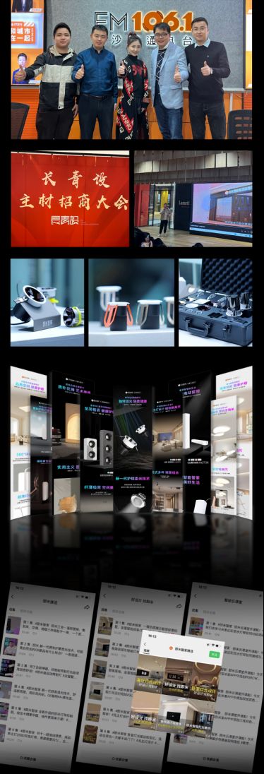 以沉浸式体验为中心展开多渠道的获客推广,即米展开视频号、抖音、小红书等全面种草,同时也受邀参与了FM1061长沙交通电台王牌栏目《千房百计》、长青设家装机构智能分享等推广活动。