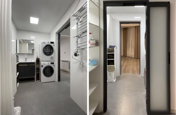 在流线布局方面,将卫浴间北侧墙体向北移动400mm,拓宽卫浴面积;通过拆除原有的储藏间,使卫浴间变为整齐的长方形平面;将南北两侧墙体对称开洞并安装PD门,形成“玄关-厨房-卫浴间-主卧-客厅”的洄游动线,保证老年人的生活行为顺畅无障碍。