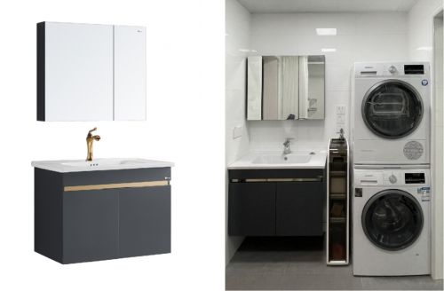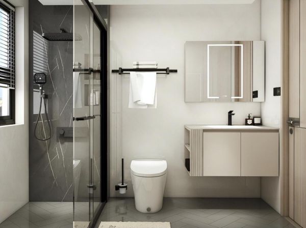 洗手盆+镜柜选用台面较宽的东鹏曼哈顿23062,便于老人随手放置零散物件。洗手盆悬空设置,方便老人坐姿洗漱,并为轮椅进出腾出充分的活动空间。水龙头采用单柄混合水龙头,有效降低老人因开错热水龙头被烫伤的风险。镜柜采用对开门内置收纳,满足多方收纳需求,方便老人存放日常洗漱用品。同时,镜柜“双面镜门+背镜”的设计实现三面成像,为老人梳妆提供宽阔视野。
