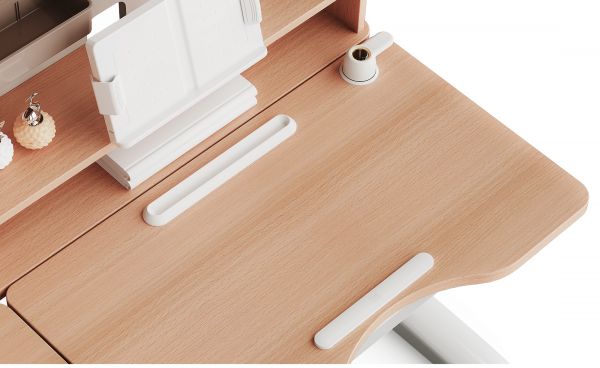 M7系列学习桌精选德国进口百年山毛榉,无疤结AA级,宝塔形纹理高端大气,色彩柔和流畅,孩子学习用眼更舒适;桌板采用20mm厚度实木板材,木质坚硬,耐磨损,长时间使用,桌面更加油润有光泽;桌面经慢烘干工艺处理,不开裂、不变形,品质卓越。