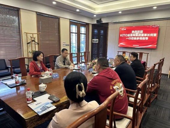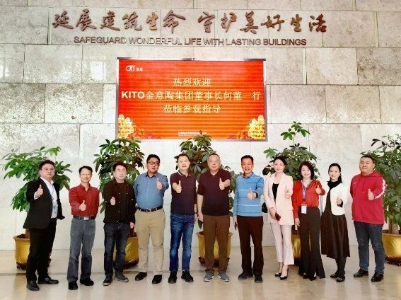 KITO金意陶集团董事长何乾、交付中心负责人徐利东共同出席签约活动。科顺股份集团董事长陈伟忠,集团营销中心销售运营总监周晶,陪同走访并参与座谈交流。
