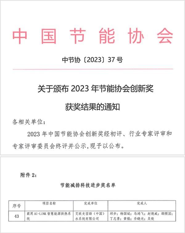 日前,中国节能协会发布了2023年中国节能协会创新奖的获奖名单,A.O.史密斯“商用AI-LiNK智慧能源供热系统”凭借独特的创新技术,荣获“节能减排科技进步奖”。这表明,A.O.史密斯以科技创新响应国家双碳目标、高效满足用户需求的探索成果得到了业界权威认可,更是展现了其在供热行业节能低碳变革上的领航地位。