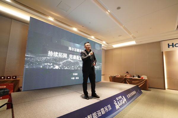 此次会议依然聚焦终端势能提升,海尔浴霸吊顶总经理陈令东、海尔康养市场总监齐新华、市场总监娄锋等领导上台发言,从市场变化、行业趋势、产品规划、营销举措等方面,向在场的各位经销商家人们传达了海尔浴霸吊顶2024年的新战略、新方向。