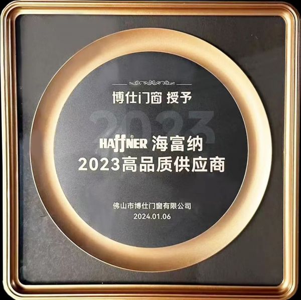 喜报丨海富纳集团(Haffner Group)荣获博仕门窗“2023高品质供应商”奖