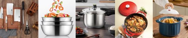 年夜饭作为一年中最重要、最丰盛的一顿团圆餐,避免不了繁琐的备菜及烹饪环节,选择趁手的刀具、锅具及备菜神器很关键。张小泉华韵七件刀具套装,一套包含菜刀、切片刀、斩骨刀、小厨刀、水果刀、剪刀和磨刀棒,专刀专用,烹饪更高效。美厨不锈钢盆三件套,两盆一筛功能齐全,洗菜、和面、淘米、拌沙拉一套搞定,让备菜环节更加得心应手。家宴大餐煎炸蒸煮炒是基本操作,选对锅具很重要。肉类食材炖煮比较耗时,想要高效做出美味佳肴,可用爱仕达不锈钢高压锅,90Kpa高压快煮更省时间,6.5L大容量可满足全家饮食需求。双立人珐琅铸铁锅,炖焖煎烤多种功能轻松拿捏,自循环“花洒”设计能让食材水分不流失更鲜嫩。康巴赫砂锅弧形煲盖设计紧锁食材营养,热力内部均匀循环,轻轻松松煲出色香味俱全的砂锅汤。