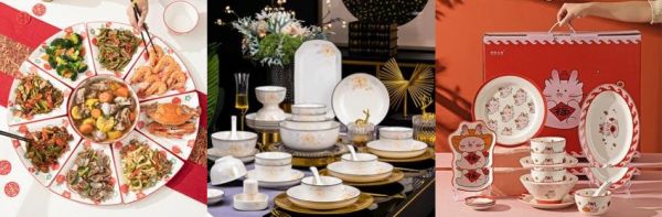 年夜饭不仅要好吃,仪式感也很重要,配备一套高颜值餐具能将喜庆氛围瞬间拉满。佩尔森平安喜乐拼盘陶瓷餐具,包含中间的汤碗以及外圈的8个扇形拼盘,全套摆盘造型整齐美观。浩雅景德镇金枝玉叶餐具套装,图案清新雅致符合中式审美,套装中鱼盘、汤碗、饭碗、味碟、汤勺等一应俱全,可充分满足家宴用餐需求。而摩登主妇龙年原创餐具萌趣可爱,高温贴花入口更安心,11件碗碟套装含多种器型组合,更适合两口之家使用。