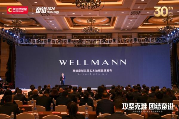 2024年1月10日,在2024大自然家居全国经销年会上,大自然家居发布高端定制三层实木地板品牌——WELLMANN。从高端品质、贴心服务、柔性定制、时尚设计及品牌血统等方向诠释中国端定制三层实木地板,以满足高净值人群对高端品质生活的需求。