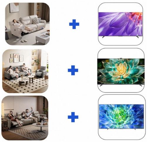 其中,万元以内的实惠套系,以奶油质感的沙发,搭配65-75英寸120Hz高刷频率电视,打造舒适休闲的奶油治愈风客厅;2万元以内的智慧套系,以进口头层牛皮电动功能沙发、采用AI超感摄像头的75-85英寸电视等升级装备,打造立体观影体验;2万元-3万元的豪华套系,适配面积更宽阔的户型,内含可精准调节靠背、座椅的沙发,以及百英寸电视,为全家人带来更极致的享受。