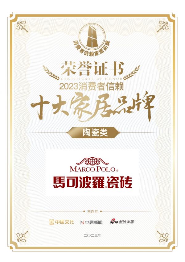 作为陶瓷类的佼佼者,马可波罗陶瓷凭借品牌综合实力,荣膺「2023消费者信赖十大家居品牌」陶瓷类十大品牌。