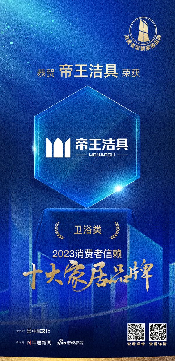 信誉超群!帝王洁具荣膺「2023消费者信赖十大家居品牌」