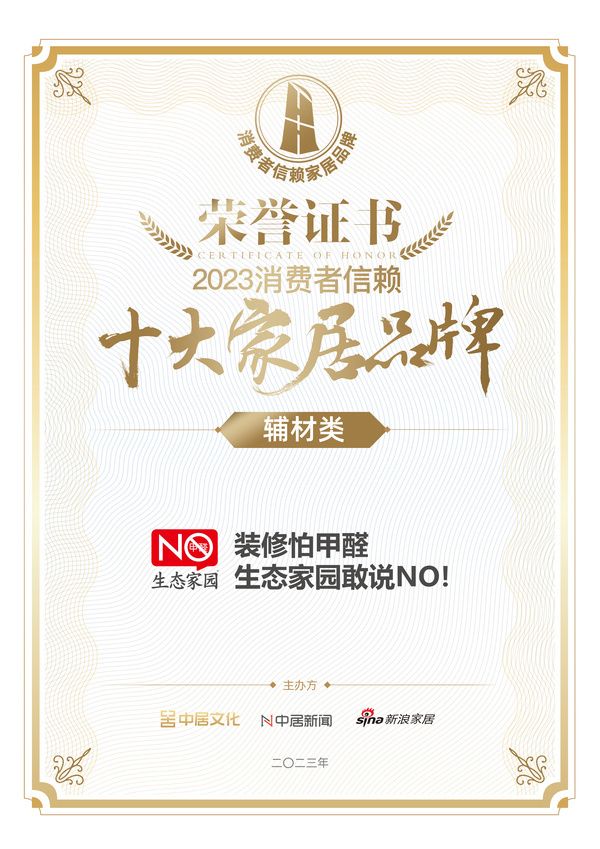 喜报!生态家园荣获辅材类「2023消费者信赖十大家居品牌」
