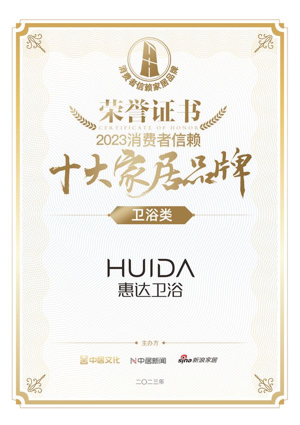喜报!惠达荣获卫浴类「2023消费者信赖十大家居品牌」
