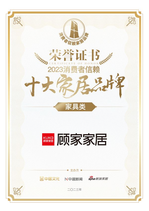 喜报!顾家家居荣获家具类「2023消费者信赖十大家居品牌」