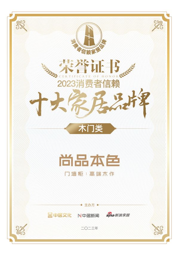 喜报!尚品本色荣获木门类「2023消费者信赖十大家居品牌」