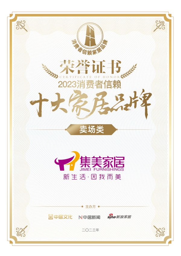 喜报!集美家居荣获卖场类「2023消费者信赖十大家居品牌」