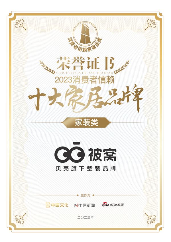 喜报!被窝整装荣获家装类「2023消费者信赖十大家居品牌」