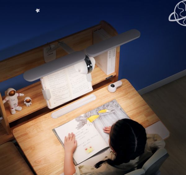 特制防眩光灯罩,亮度均匀无眩光,孩子直视不伤眼。照度达到超国标的AA级,高效护眼防近视。智能化自动感应设计,根据环境自动调节灯光强弱。入座5秒自动亮起,离座10分钟自动关闭。45分钟智能提醒,劳逸结合,避免用眼过度。