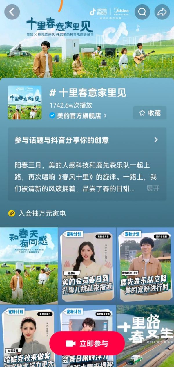2023年3月,美的联合抖音电商会员日整合站内超300个集团账号,前期打造统一的会员体系,让经销商也能同步进行会员运营。
