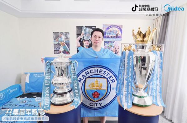 除了超级会员日,2023年9月,美的还联手抖音电商超级品牌日,共同推出了「曼城三冠王奖杯国内巡游」活动,将球迷梦寐以求的冠军时刻搬进现实。