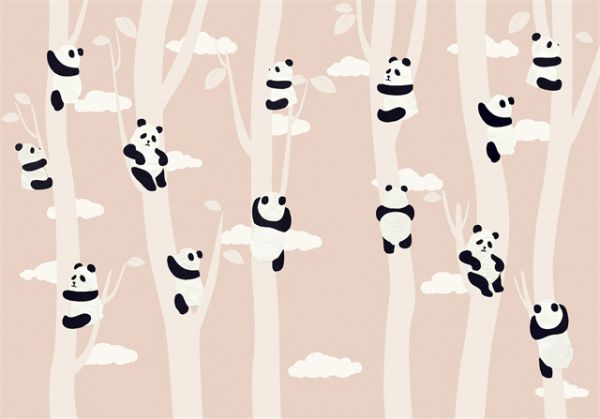 浅粉色与熊猫和丛林元素的巧妙结合