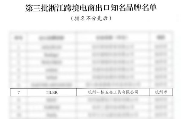 近年来,党中央和国务院高度重视跨境电商的发展。为了加强跨境电商出口品牌的培育,增强其核心竞争力,浙江省商务厅在全省认定了2023年度跨境电商出口知名品牌,其中TILER泰勒工具成功入选。