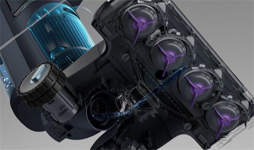 米博独创的“水气旋超净洗”技术,以14m/s的冲洗速度,快速将地面污渍浸湿,配合PVC硅胶地刷旋转冲洗,同时配以10N的弹力增压,模拟人手擦地,可以强力刮除地面上的各种污渍。无布地刷的悬浮避震结构,可以适应各种不平坦地面,最大程度贴合地面达到彻底清扫的效果。