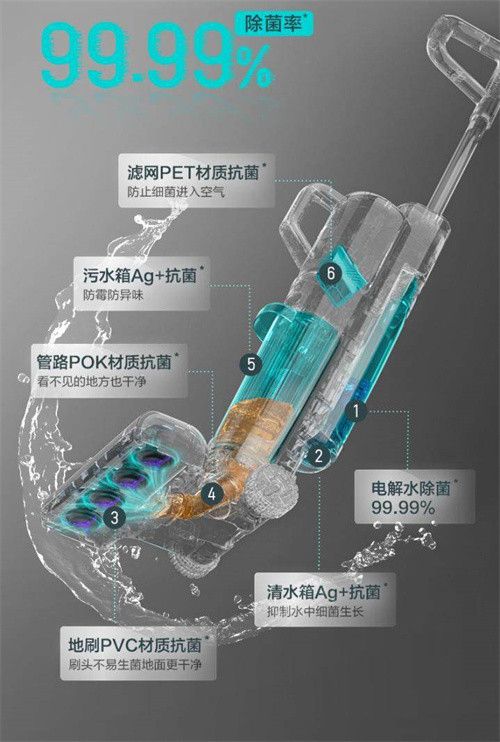 传统洗地机滚刷一般采用软绒材质,虽然吸水性比较好,但是极易藏污纳垢,久而久之绒毛根部就会藏满油污、灰尘、毛絮等污渍,成为细菌温床。即便滚布型洗地机配备了热风烘干功能,也是治标不治本,难以解决日积月累的污渍,更容易在烘干过程中将细菌灰尘扩散到家庭空间,造成二次污染。区别于滚布洗地机使用后需要手动清理滚布,米博新品的自清洁功能真正实现了免手洗、免烘干、全链路除菌、不发臭,不仅用时短,而且抗菌率可达99%。米博洗地机也因此成为首家获得德国莱茵TUV高效自清洁认证的洗地机品牌。
