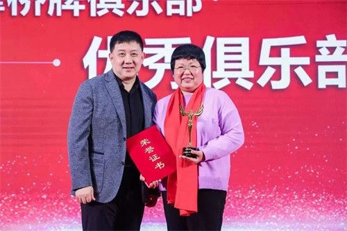 表彰大会上,张钧董事长为女子桥牌世界冠军、业之峰桥牌俱乐部总教练孙燕慧进行了颁奖,授予“优秀俱乐部总经理奖”。孙燕慧表示,2023北美桥牌夏季大赛瑞士制团体赛冠军的含金量非常高,业之峰桥牌队在张董的带领下,团结和谐,积极训练,再加上运气的加持,最终成功夺冠,成就了绝无仅有的“两连冠”,业之峰也由此成为桥牌圈内非常有名的“神奇团队”。