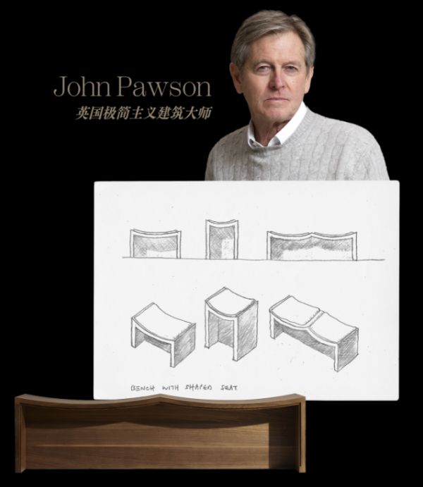 例如与英国极简主义建筑大师John Pawson合作,就是一个深度融合的过程。以大师同名系列“约翰波森凳”来说,在外观上体现了“中式屋檐”形象、又融入了属于建筑的结构美、形式美。而在材质上,出于对濒危树种的保护,放弃了中国传统红木,而选择北美的黑胡桃木,在保证家具的质量基础上,又对可持续发展做出贡献。而这在韩轶看来,是美和长期主义更为平衡的一种取舍。在传统工艺上,“约翰波森凳”在加脚钉之前凳脚与地面的叠基缝隙是10毫米,有了脚钉后变成了14毫米。而班兰却执着于这4毫米之差,最后John Pawson将缠绕反转至作品底部的叠基停止于凳脚的下部,从而形成了一个极似中国传统家具中一种名为“马蹄”的设计,不仅解决了这4毫米之差,也让中国传统文化得到了现代表达。
