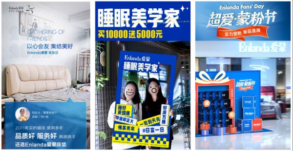 在经历过去三年的多重变化后,Enlanda爱蒙敏锐地捕捉到人们心中的情绪痛点,发起了实力宠粉-超爱蒙粉节、爱家日等不同营销活动,传递品牌的关爱与温暖。通过线上线下多元化的互动形式,让消费者感受到Enlanda爱蒙“爱,在日常”的品牌主张。