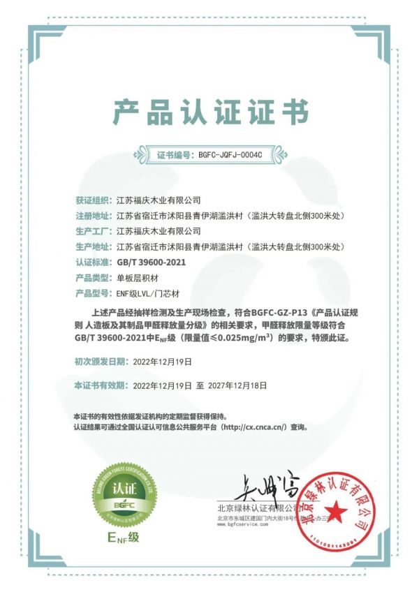 福庆LVL联合1家研究所、3所高校,经过65次工厂测试,18次技术改进,研发出甲醛释放量≤0.025mg/m³的树脂胶黏剂,以绿色环保推动产品升级。