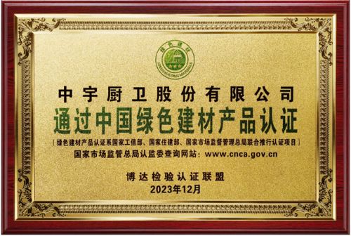 中宇厨卫通过绿色建材产品认证荣誉证书