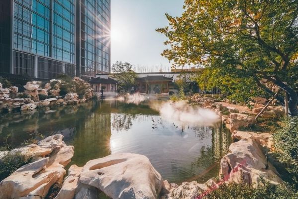 苏州华贸中心位于石路地区、姑苏区核心位置,是华贸集团潜心研发十年的升级之作,一座集金融、总部办公、商业零售、文化艺术、品质餐饮、商旅服务国际化居所等为主的现代服务业运营平台。居于这座2500年历史的古城中,苏州华贸中心与留园、寒山寺、拙政园、上塘河等人文遗产为邻,坐拥意境悠远的文化运河,环抱得天独厚的浓郁艺术氛围,承担起传承在地历史文化的使命。不久前,华贸对传奇名园——紫芝园的匠心重建正式完成,让这座消失近400年的传奇名园在现代商业综合体中焕然重生,并围绕紫芝园探讨诗意栖居的种种可能,将艺术化的生活方式推向极致。