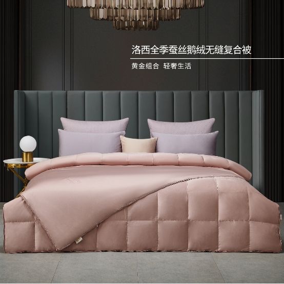 众所周知,羽绒保暖,蚕丝润肤,如果这两种材质,出现在一起会有什么神奇的睡眠体验呢?艾莱依家纺洛西全季蚕丝鹅绒无缝复合被,可以给你一个完美的答案。子被精选百分百桑蚕丝填充,温润肌肤,安适美眠。母被精选芮卡95%白鹅绒,轻盈柔暖,洁净安睡。同时,人性化的子母复合设计,充分满足四季睡眠所需,并且优选透气出色的雅棉面料,避免被窝闷热,保持肌肤呼吸舒畅。此外,精致的英文绣花,美轮美奂,贴心的头脚识别工艺,也特别加分。天生宠肤,四季美眠,就选洛西全季蚕丝鹅绒无缝复合被。