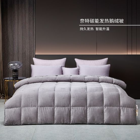 说到科技感,就不能不提艾莱依家纺的奈特碳能发热鹅绒被,因为它是睡眠与科技跨界融合的代表。奈特碳能发热鹅绒被的面料采用太极石碳能纤维功能性健康面料,可以持久释放能量波,发热保暖,温升可达3~8℃,更有独特蜂窝状微孔结构,牢牢锁住身体的热量不流失。填充物则选用高温差地区的精品芮卡白鹅绒,33道深层水洗净化工艺精制,绒朵触感细腻,清新洁净。并且还有被头加密与可拆卸工艺的强强联合,温暖呵护,打理便捷。如果用一句话来概括,就是奈特碳能发热鹅绒被,让你的被窝热情似火。