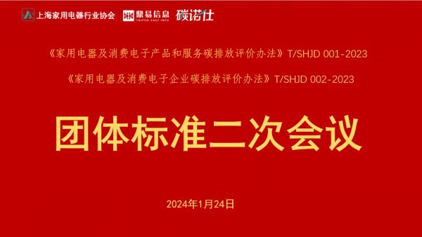 2024年01月25日上海家用电器行业协会立项的编号为T/SHJD 001-2023《家用电器及消费电子产品和服务碳排放评价办法》团体标准和编号为T/SHJD 002-2023《家用电器及消费电子企业碳排放评价办法》团体标准,由上海家用电器行业协会、上海鼎易信息技术有限公司、上海碳诺仕咨询管理有限公司牵头组织召开了两个团体标准的第二次会议。上海家用电器行业协会副会长、双碳工作领导小组副组长唐鹏主持会议。