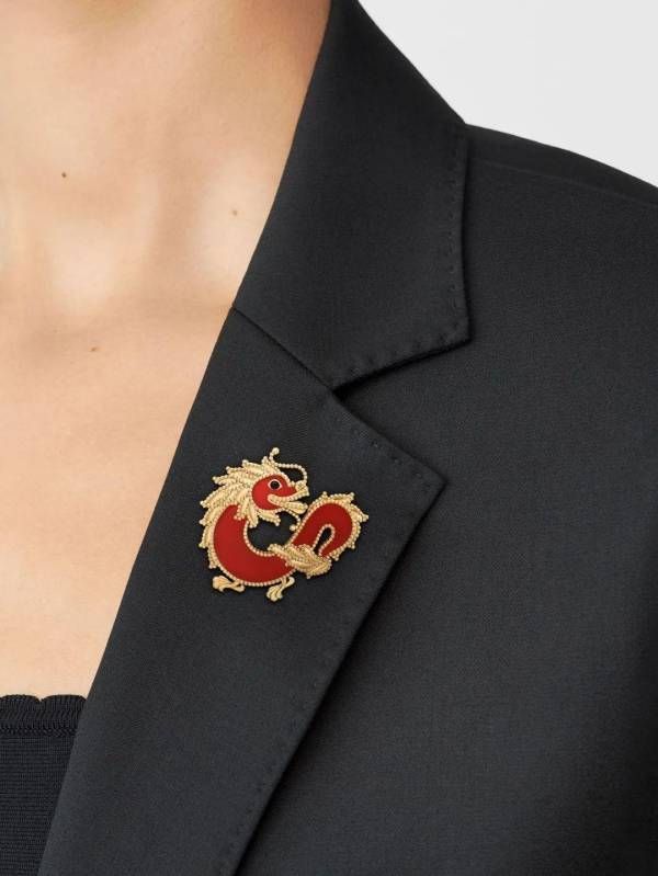 红玉髓与黄K金明艳交织,巧妙的色彩搭配,烘托新年伊始的喜悦氛围,为Dragon(龙)胸针注入欢愉祥和之气。