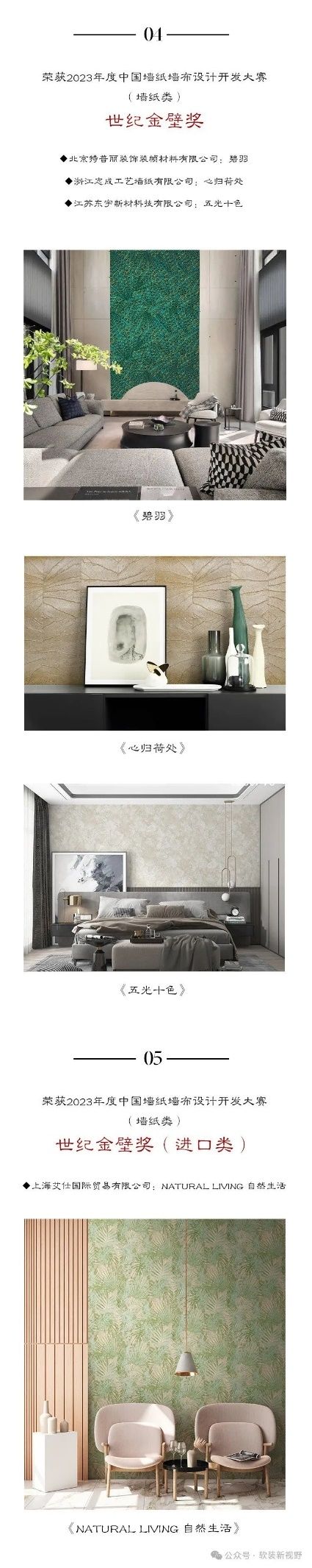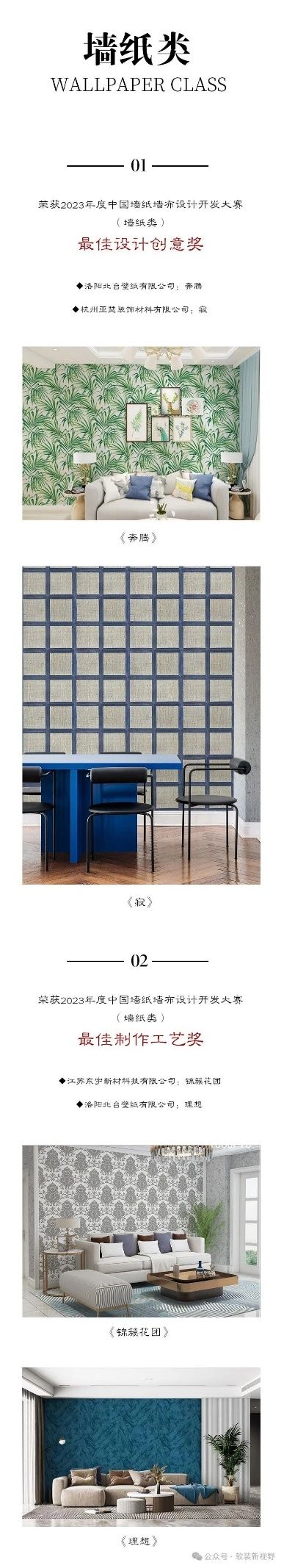2023年度中国墙纸墙布设计开发大赛获奖榜单