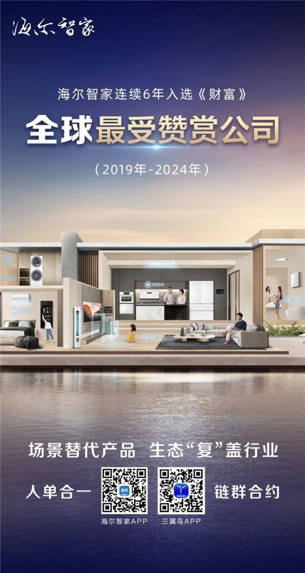 美国东部时间1月31日,《财富》杂志公布了2023年“全球最受赞赏公司”榜单,海尔智家再次上榜,成为家电家居业欧亚唯一。至此,海尔智家已连续6年入选该榜单。