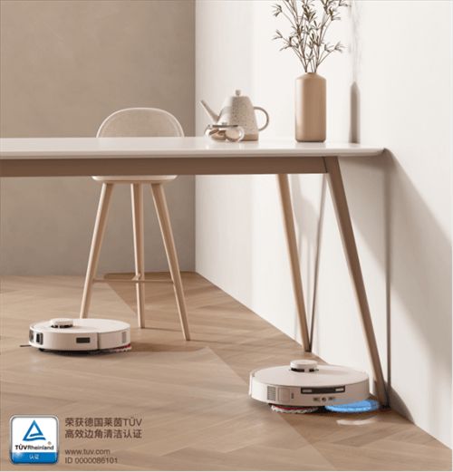 值得一提的是,科沃斯地宝T30 PRO荣获了德国莱茵TUV的高效边角清洁认证,权威认证了地宝T30 PRO在边角清洁方面的创新和能力,有效解决了目前市面上机械臂产品在清洁效果和效率上的不足。