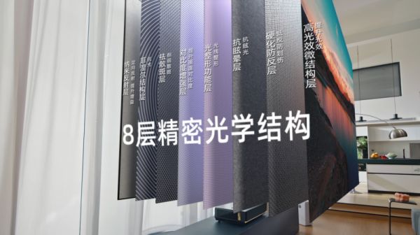 海信最新款的L5K和L8K都采用了菲涅尔无源抗光屏,含有8层精密光学结构,其中包括改善屏幕反射和倒影问题的硬化防反层和降低炫光现象的抗眩光层,所以能在白天和存在环境光干扰时,依旧有出色的屏幕增益效果。同时,调光速度能达到微秒级,观看过程中无重影,做到真正的“视力友好”,是龙年观影最好的陪伴与祝福。